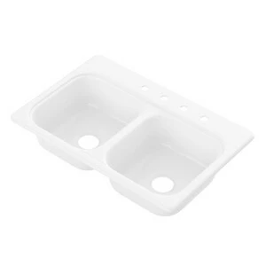 Flash Sale ✔️ PROFLO® Magalia 7-3/10 in. 4 Hole Stainless Steel Double Bowl Self-Rimming and Drop-in Enameled Steel Kitchen Sink in White 😍