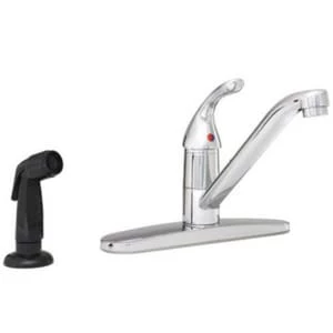 Best Sale 🤩 PROFLO® Single Handle Kitchen Faucet in Polished Chrome with Black Side Spray and Deck Plate ⭐